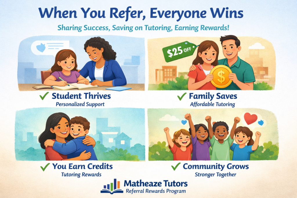 Sharing trusted academic support creates positive outcomes for everyone involved. The Matheaze Tutors Referral Rewards Program helps families support one another while earning meaningful rewards.